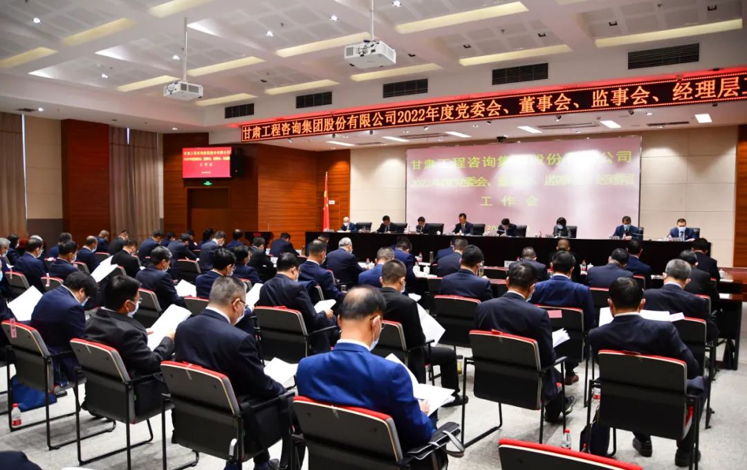 4月29日,甘肅工程咨詢集團(tuán)召開(kāi)2022年度“三會(huì)一層”工作會(huì)議,全面總結(jié)2021年工作,安排部署2022年工作。黨委副書(shū)記、總經(jīng)理馬明主持會(huì)議,集團(tuán)公司黨委會(huì)、董事會(huì)、監(jiān)事會(huì)、經(jīng)理層成員,各子公司黨委書(shū)記、董事長(zhǎng)(執(zhí)行董事)、總經(jīng)理、監(jiān)事會(huì)主席、黨委副書(shū)記、紀(jì)委書(shū)記、財(cái)務(wù)總監(jiān),集團(tuán)公司各部門負(fù)責(zé)人參加。