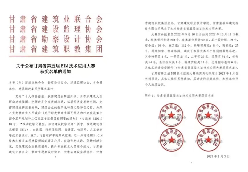 甘肅工程咨詢集團在甘肅省第五屆 BIM 技術應用大賽中斬獲多個獎項