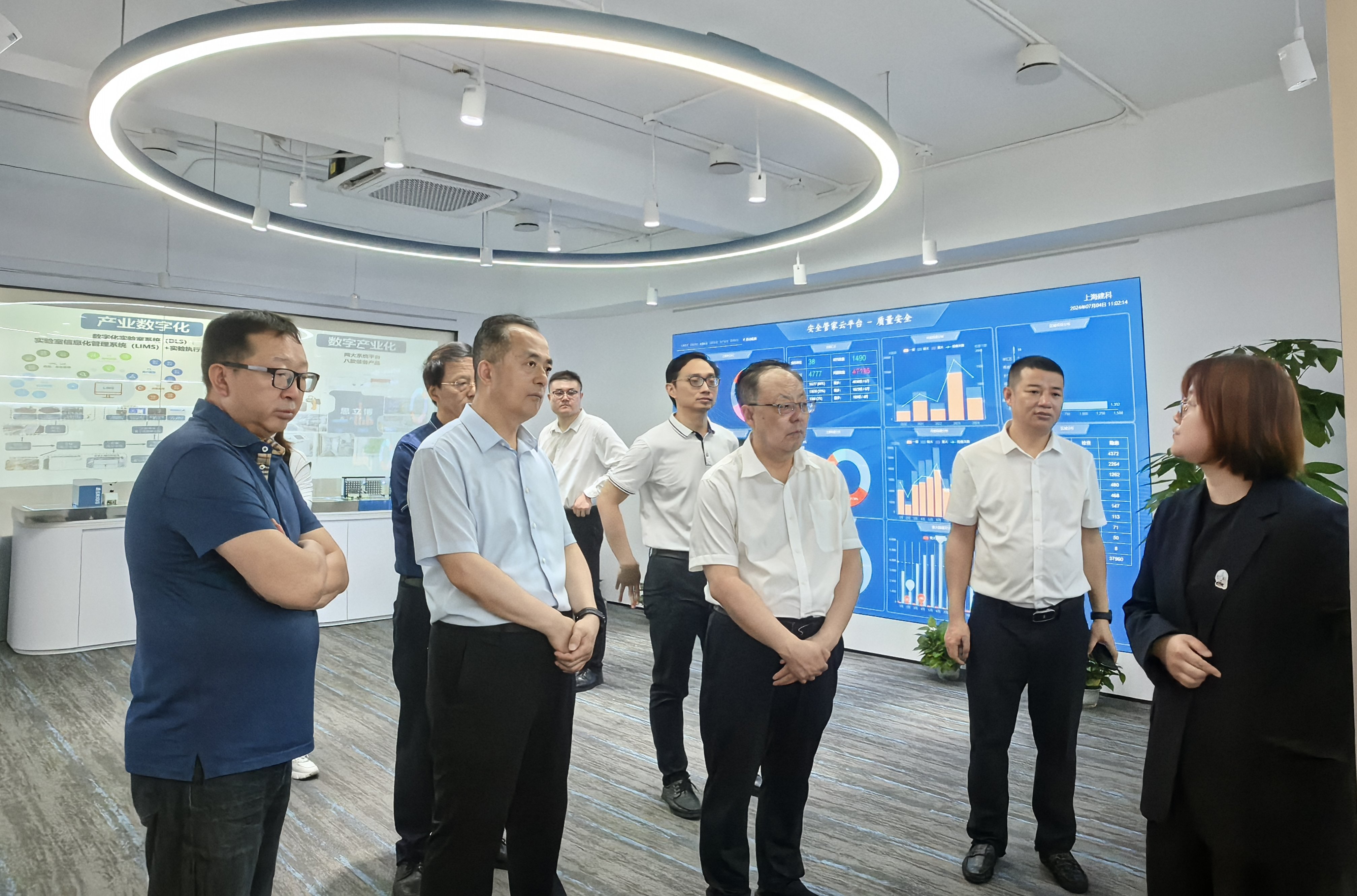 調研組一行參觀考察了上海建科集團檢測中心莘莊園區三代綠色建筑示范樓、工程檢測業務實驗室并開展了座談交流,全面了解了園區建設運維、業務開展、設備配置、經營管理等情況,為西部工程檢測研發基地的運營發展積累了寶貴經驗。