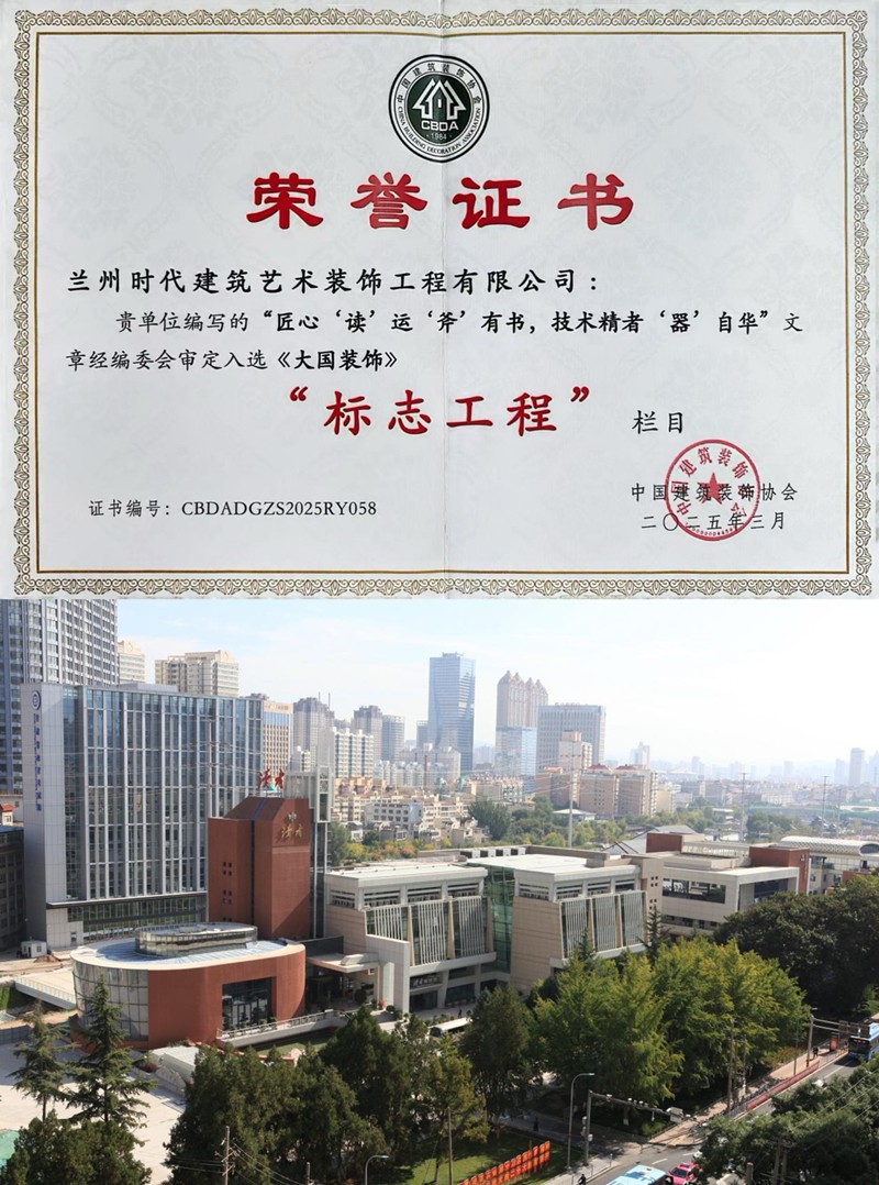 近日,中國建筑裝飾協會為紀念協會成立40周年,出版《大國裝飾》一書。甘肅工程咨詢集團所屬省建筑設計院設計的“讀者出版集團A、B座辦公樓裝飾改造項目”被該書收錄為“標桿工程”,是甘肅省唯一入選項目。