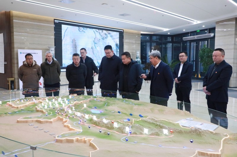 李文生一行實地察看了省水電設計院魚兒溝科研設計基地,現場觀摩了甘肅省水網建設沙盤演示。