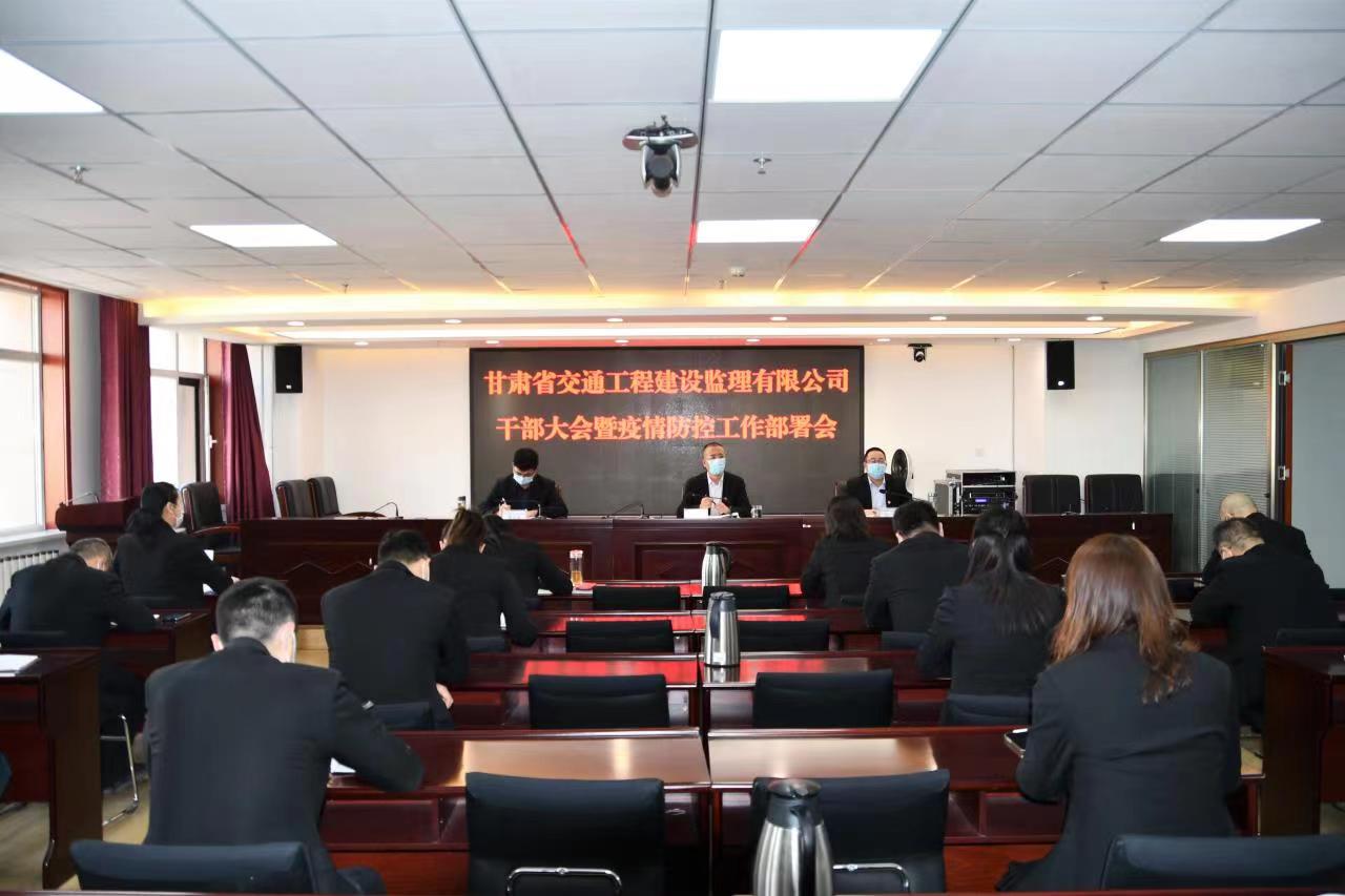 3月10日,甘肅省交通工程建設監理有限公司召開干部大會暨疫情防控工作部署會。領導班子成員、機關全體干部職工在主會場參會,各子公司、項目機構在分會場參會。會議由黨委書記、董事長張吉主持。