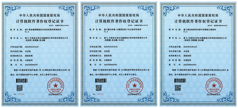 喜報!甘肅省水利水電勘測設計研究院有限責任公司三項計算機軟件獲得著作權登記證書