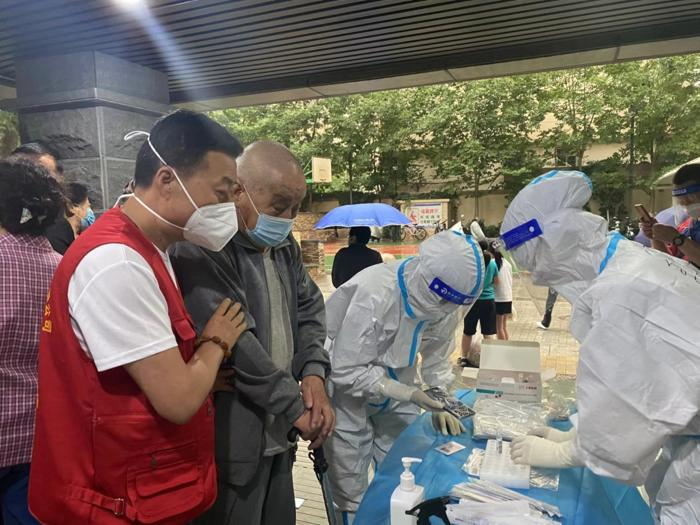盛元小區一共有5個單元,500多戶,2000多人;新港城小區屬于城關區比較大的居民小區,分為ABCDE五個區,共有300多個單元,5200多戶,16000多人居住。面對這些情況,陳萬國、李朋袀和白萬景等志愿者沖在前面,維持檢測秩序,布置核酸檢測點位,分發甘肅抗疫中藥包,投放樓棟垃圾,匯總登記問題并與社區和醫務人員溝通逐一解決。接受核酸檢測的隊伍中,有上至八九十歲的老人,下至三四歲的孩童,還有行動不便的病人,他們總是無微不至,耐心引導,尤其在遇到一些行動不便的老人和病人時,他們主動上前攙扶,把貼心的溫暖送給每一名群眾。