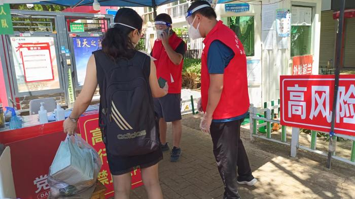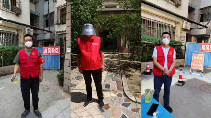 疫情發生后,陳萬國、李朋袀、白萬景三人克服家里老人無人照顧、孩子尚小的個人困難,第一時間向建筑設計院黨委申請,志愿成為防疫“戰士”,義無反顧地投入到了酒泉路街道南稍門社區盛元小區和雁北路街道大橋社區新港城小區緊張的防疫工作中。