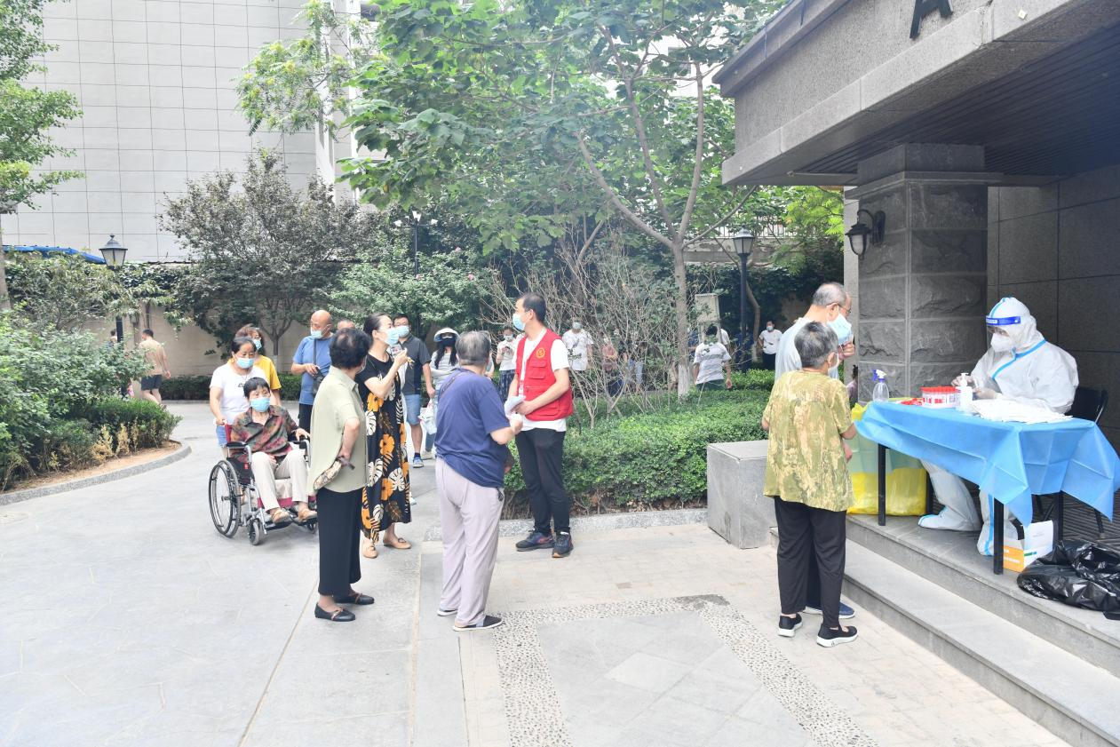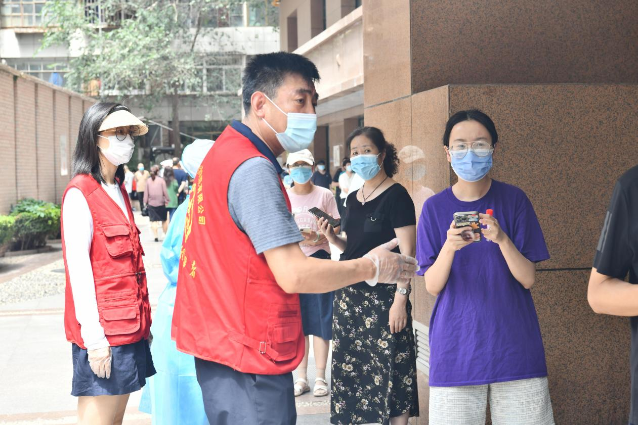 中午時分,志愿者們頂著38℃的高溫,穿梭在小區核酸檢測采集現場、小區出入口,按照核酸檢測要求,引導待測人員佩戴好口罩、保持安全距離、有序排隊。他們嗓子啞了也顧不上喝一口水,身上的衣服已不知被汗水浸濕了多少次,卻始終沒有一個人叫苦叫累,依然努力奮戰在核酸采樣第一線,用實際行動展示“奉獻、友愛、互助、進步”的志愿精神,詮釋國企擔當。