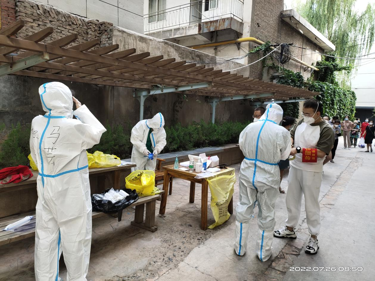 市政工程設計院工程師劉倩倩,主要負責所在小區的門崗值守及門崗巡查、核酸檢測維持秩序、分貼試管碼等系列工作。穿梭在各個工作點,協調問題和解決難題,她都游刃有余,一天下來,她的聲音早已經沙啞,口罩也擋不住厚重的黑眼圈,但是她總是笑著說,“檢測不結束,我們不離崗,只要我守住了一個不起眼的崗位,就能守住病毒。雖然有點辛苦,但是心里踏實”。