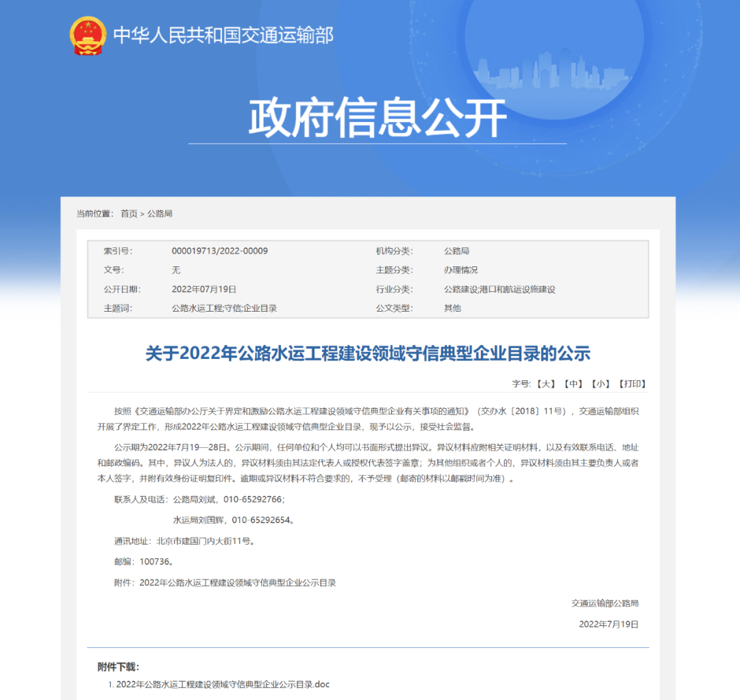 近日,交通運輸部公布了《關于2022年公路水運工程建設領域守信典型企業目錄的公示》對獲評公路水運工程建設領域守信典型的93家設計企業、93家施工企業、56家監理企業予以公示。甘肅省6家企業榜上有名,甘肅省交通工程建設監理有限公司是我省唯一一家上榜的監理企業。