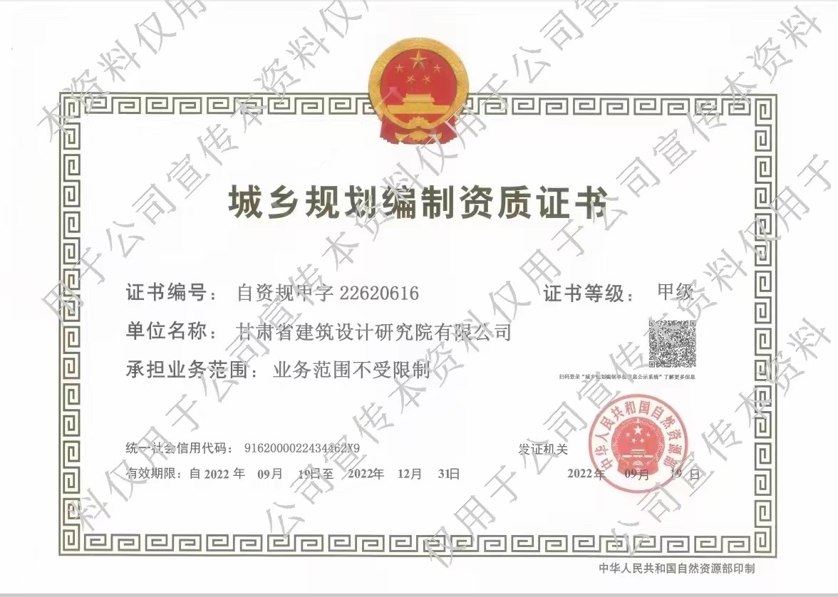 日前,國家自然資源部發(fā)布《自然資源部關(guān)于2022年第六批城鄉(xiāng)規(guī)劃編制單位甲級資質(zhì)認(rèn)定的公告》,甘肅省建筑設(shè)計(jì)研究院有限公司名列其中,喜添城鄉(xiāng)規(guī)劃編制甲級資質(zhì)。