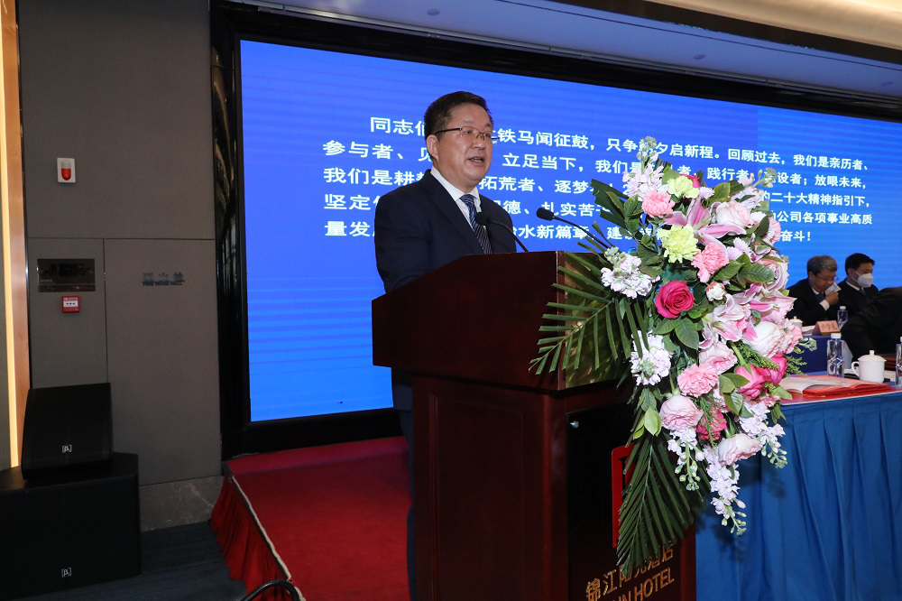 牛軍在講話中指出,水電設(shè)計(jì)院的工作是甘肅水利工作的一個(gè)重要組成部分。過去的一年,水電設(shè)計(jì)院堅(jiān)持以習(xí)近平新時(shí)代中國特色社會主義思想為指導(dǎo),切實(shí)踐行“十六字”治水思路,準(zhǔn)確把握全省水利發(fā)展動態(tài),緊緊圍繞生產(chǎn)經(jīng)營中心任務(wù),實(shí)現(xiàn)快速發(fā)展,為全省水利改革發(fā)展提供了堅(jiān)強(qiáng)的技術(shù)支撐。他要求,新的一年,水電設(shè)計(jì)院一要堅(jiān)持黨的領(lǐng)導(dǎo),深入學(xué)習(xí)貫徹黨的二十大精神,把黨的領(lǐng)導(dǎo)和黨的建設(shè)融入企業(yè)治理各環(huán)節(jié),堅(jiān)持服務(wù)全省水利“五水共建、四網(wǎng)統(tǒng)籌”的部署,為我省“一核三帶”發(fā)展格局、“四強(qiáng)”行動提供堅(jiān)強(qiáng)水安全保障。二要發(fā)揮智庫作用,立足實(shí)際、面向未來,緊抓當(dāng)前水利改革發(fā)展重大機(jī)遇,積極落實(shí)“四抓一打通”方案,推進(jìn)重大引調(diào)水工程和區(qū)域骨干水源建設(shè),完善城鄉(xiāng)輸配水系統(tǒng),主動配合謀劃儲備一批水資源支撐保障重大項(xiàng)目,盡快形成“甘肅水網(wǎng)”新格局。三要激活創(chuàng)新引擎,不斷加大科研創(chuàng)新力度,切實(shí)提高企業(yè)核心競爭力,努力打造國內(nèi)一流的水利綜合性院企。深入研究國家宏觀政策,以全省水安全保障等省級頂層規(guī)劃為引領(lǐng),著力在黃河治理保護(hù)國家戰(zhàn)略、白龍江引水、南水北調(diào)西線和黃河上游重大水利工程等重大項(xiàng)目規(guī)劃設(shè)計(jì)方面,提供堅(jiān)實(shí)的技術(shù)支撐。他表示,水電設(shè)計(jì)院的改革發(fā)展與全省水利事業(yè)休戚與共,省水利廳將進(jìn)一步優(yōu)化水利市場營商環(huán)境,一如既往支持設(shè)計(jì)院改革發(fā)展,希望水電設(shè)計(jì)院繼續(xù)保持永不懈怠的精神狀態(tài)和一往無前的奮斗姿態(tài),奮力開創(chuàng)水電設(shè)計(jì)院發(fā)展新局面,為甘肅水利事業(yè)高質(zhì)量發(fā)展做出更大貢獻(xiàn)。