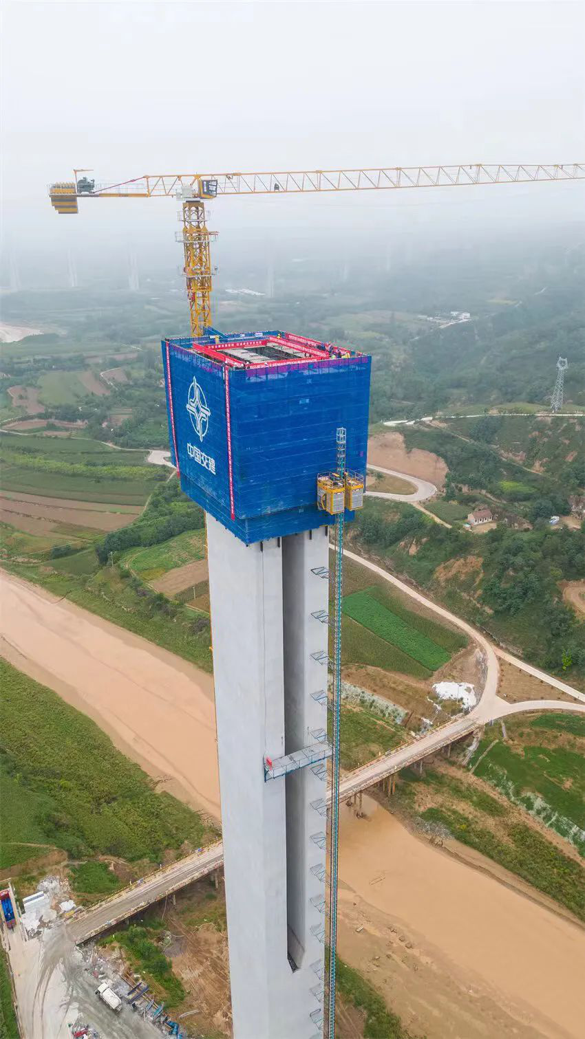 交通監(jiān)理公司代建及監(jiān)理的國內(nèi)黃土地區(qū)跨度最大、墩高最高、聯(lián)跨最長矮塔斜拉橋——馬蓮河特大橋最高主墩成功封頂
