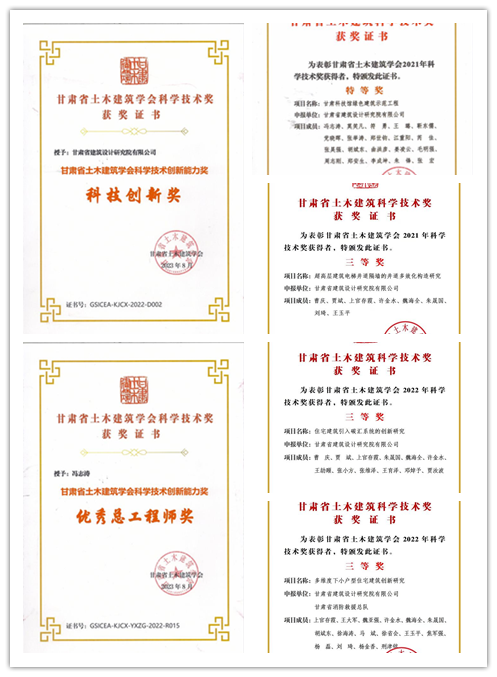 近日,從甘肅省建設行業科技創新成果研討會暨頒獎典禮上傳來喜訊:省建筑設計院被授予“科技創新獎”,設計的甘肅科技館榮獲“綠色建筑示范工程特等獎”,開展的“住宅建筑引入碳匯系統的創新研究”“多維度下小戶型住宅建筑創新研究”“超高層建筑電梯井道隔墻的井道多效化構造研究”等研究榮獲“2022年科學技術獎三等獎”;馮志濤榮獲“優秀總工程師獎”,上官存霞等8人分別獲得“第四屆中西部地區土木工程師(建筑師)”“科技貢獻獎”“科技英才獎”。