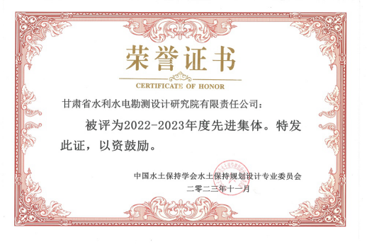 喜報|省水電設計院榮獲中國水土保持學會2022-2023年度先進集體榮譽稱號