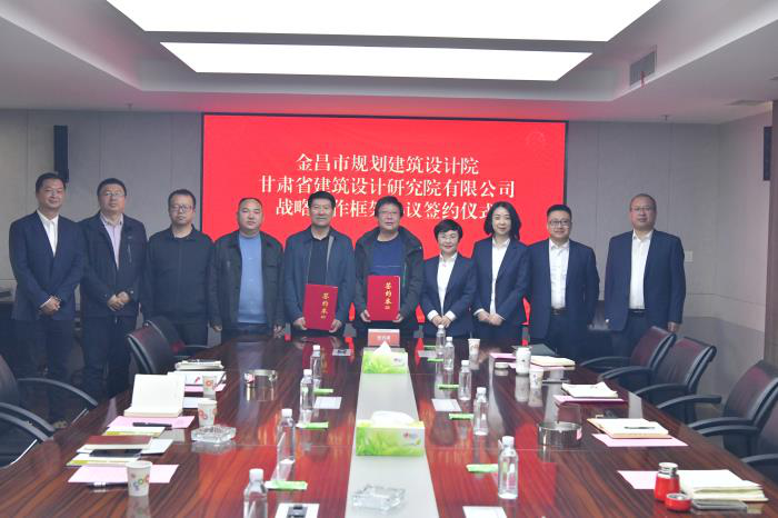 11月7日,省建筑設計院與金昌市規(guī)劃建筑設計院戰(zhàn)略合作協(xié)議簽訂儀式在蘭州舉行。金昌市規(guī)劃建筑設計院董事長魯得玉、副總經理王鋒輝和省建筑設計院黨委副書記、總經理周文新,副總經理王璐參加簽約儀式。