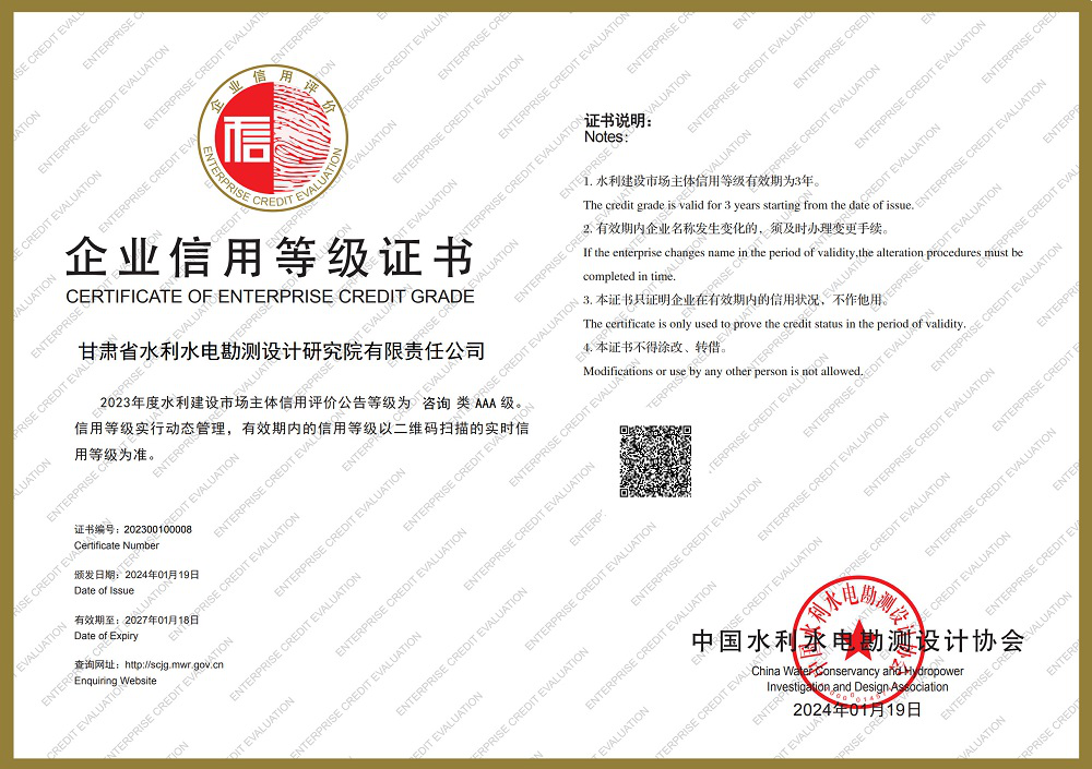 省水電設計院多個專業信用等級評價再獲最高等級
